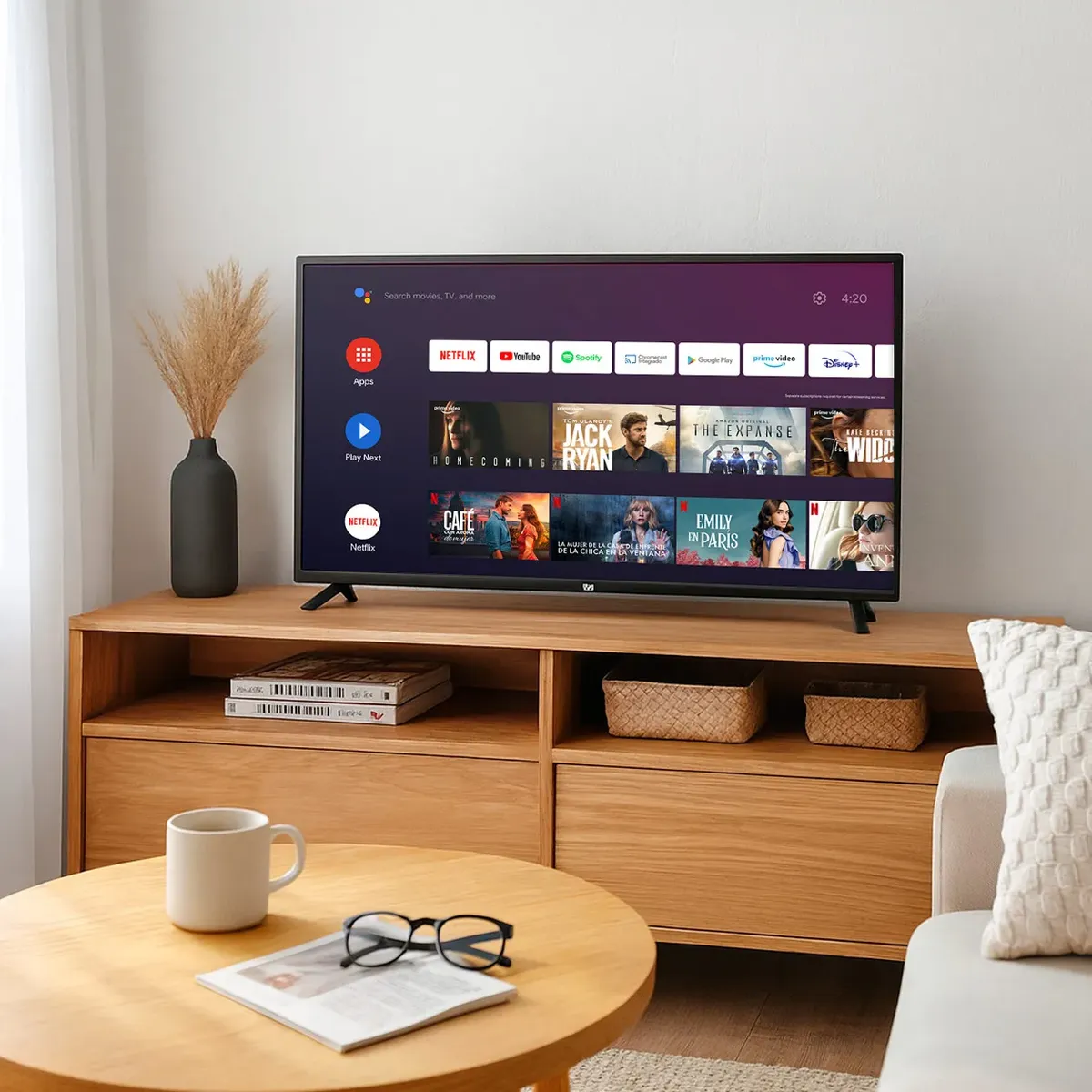 - Sistema Operativo: Android TV (ofrece la mayor biblioteca de apps: Netflix, YouTube, Prime Video, Disney+, Star+, etc.).