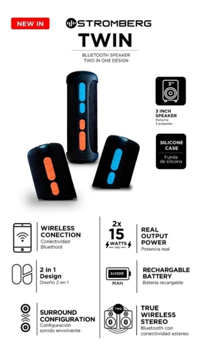 Mini Parlantes Stromberg Twin Bluetooth 2 En 1 Inalambricos