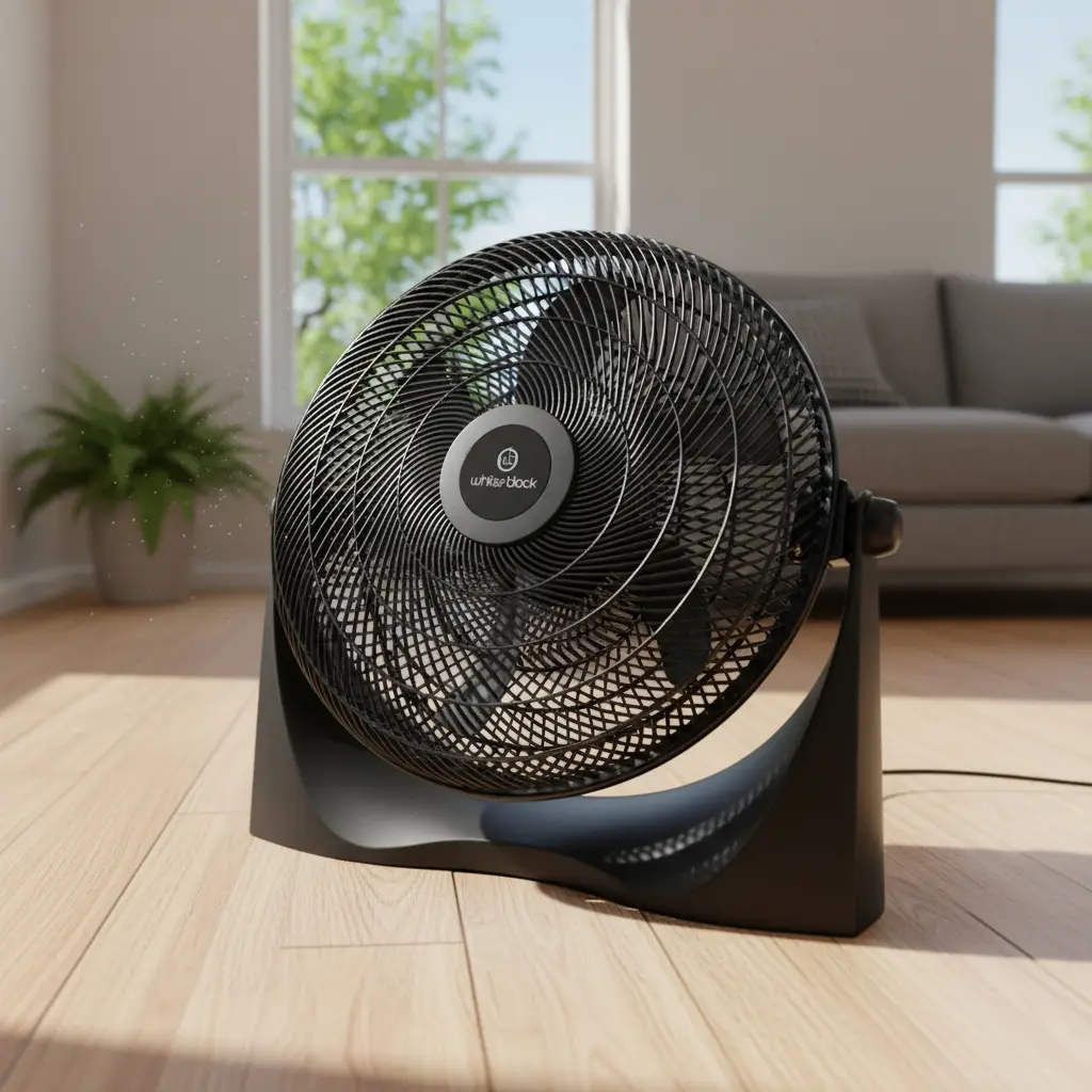 - Aspas Negras de Alta Performance: 3 aspas diseñadas aerodinámicamente para maximizar el empuje del aire con un funcionamiento equilibrado.